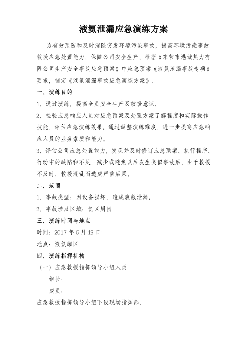028 液氨泄漏应急演练方案(5页)