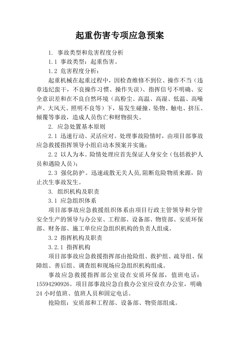 首页应急预案起重伤害专项应急预案(1)