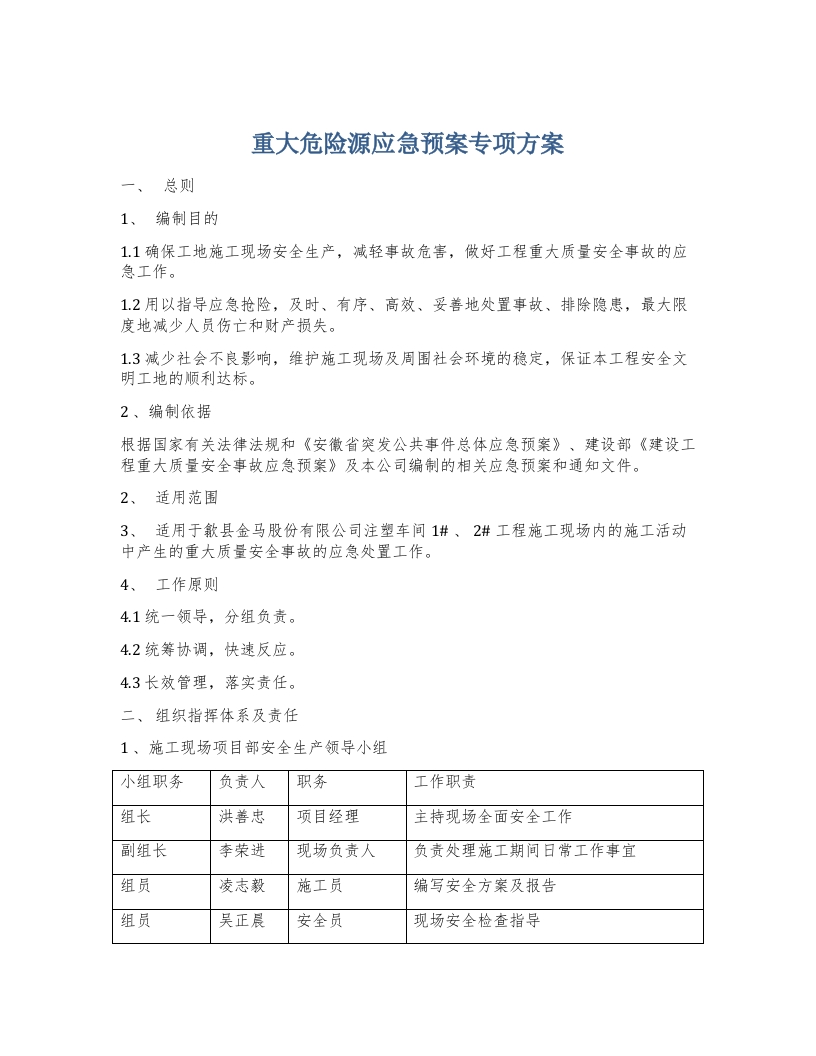 重大危险源应急预案专项方案