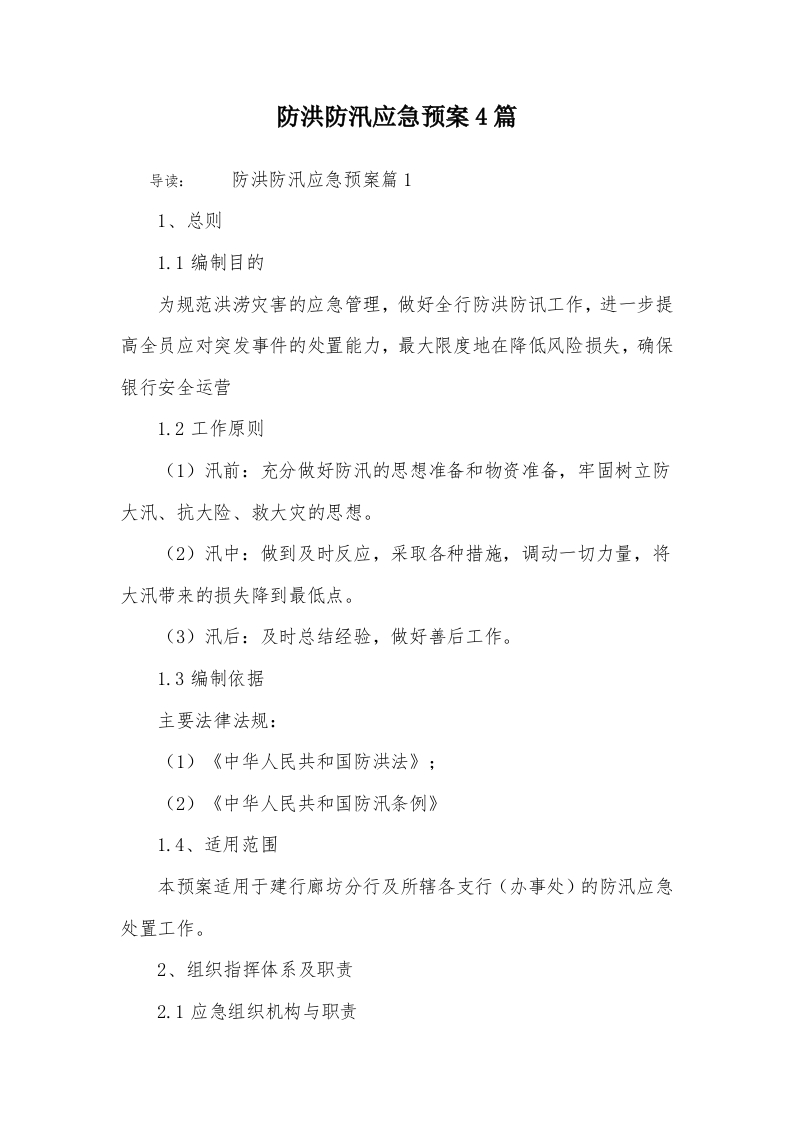 【方案】防洪防汛应急预案4篇
